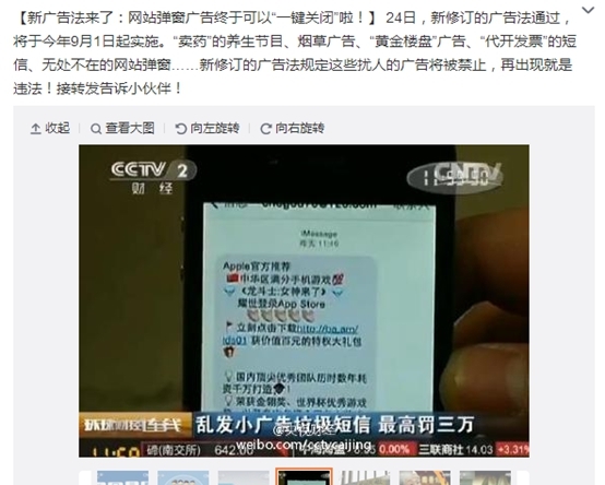 新广告法9月起实施:发广告垃圾短信最高罚3万