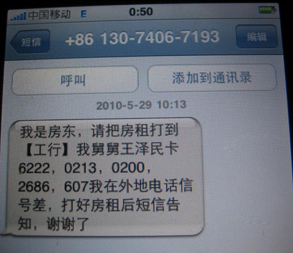 骗局二:假冒房东短信诈骗